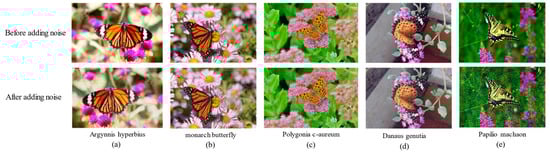 First, as shown in Figure 11, we added different degrees of noise to the 3157 butterfly images in the test set to obtain a new dataset contaminated by noise.
