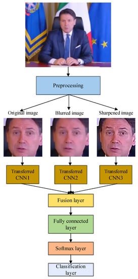 The illustration of the proposed multi-stream CNN for deepfake classification.