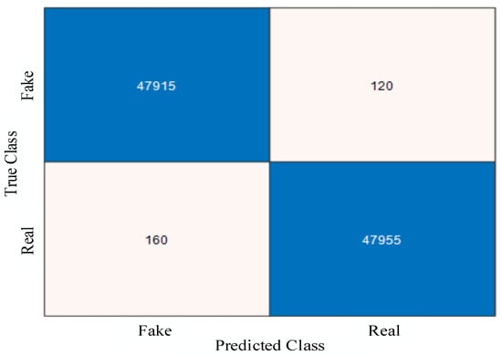 Besides, 47,915 fake and 47,955 real faces were correctly classified by the proposed multi-stream CNN approach. In Table 2, the performance evaluation measures were given for Scenario 1. As seen in Table 2, the calculated accuracy, sensitivity, and specificity scores were 99.71%, 99.67%, and 99.75%, respectively.