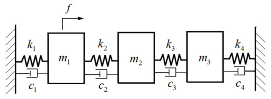 In the first example, a three-degrees-of-freedom system is selected. A schematic diagram of the structure is shown in Figure 1. The damping of the system is assumed to be Rayleigh damping, with the damping coefficients = 0.05, = 0.02.