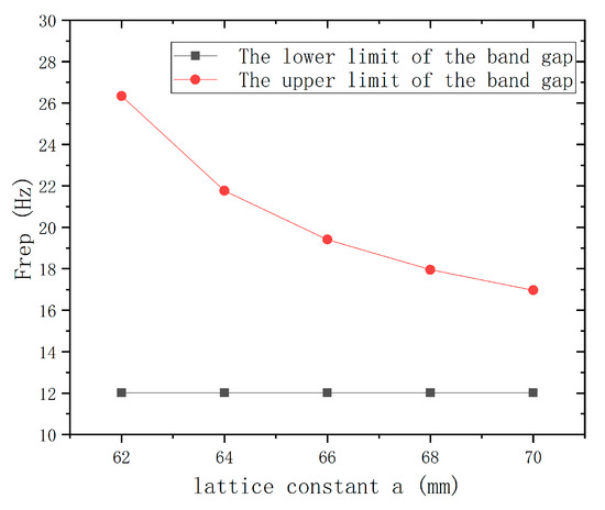 - Third item; the effects of structural parameters such as the length of the wedge base, the wedge height, and the lattice constant on the upper and lower limits of the first band gap are analyzed. It can be seen from the analysis that the wedge with a smaller base and higher height is beneficial to improve the sound insulation performance of the structure in the low-frequency range. Keeping a small lattice constant is one of the key factors to obtain a wide band gap.