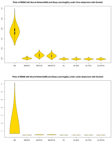 From Figure 1 and Figure 2 in cases of the in-control, over dispersion and under dispersion, we can observe that the residuals of deep learning regression models with BVS, PCS, NLPCS, and whole data for both the Clayton and Gumbel copulas show a superiority over the neural network regression models with BVS, PCS, NLPCS, and whole data in Table 1 in terms of the precision by a measure of spread, IQR.