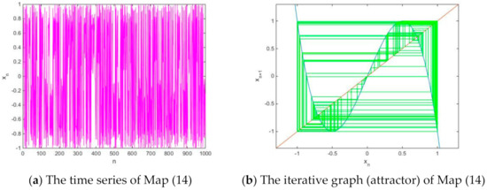 Figure 8, the period of the output sequence of Map (20) shows short period behavior, which is not suitable for an ideal pseudorandom sequence. Therefore, it is necessary to optimize the period of the output sequence of Map (20). Let the general iterative map in the digital field be