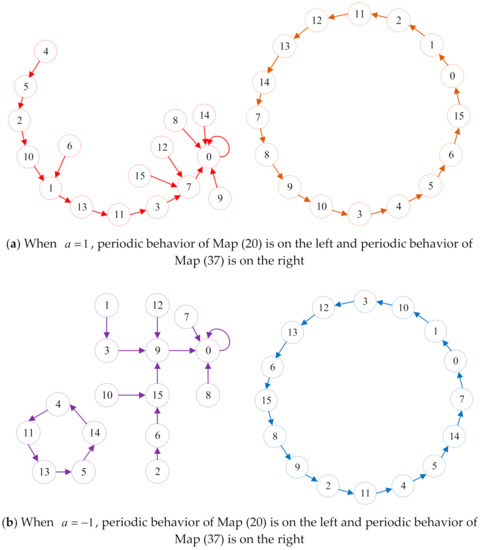 is higher, the difference between all periodic behaviors of Maps (20) and (37) is more obvious. Due to the limitation of computer precision and storage devices, the periodic behavior of Maps (20) and (37) cannot be directly described when the precision