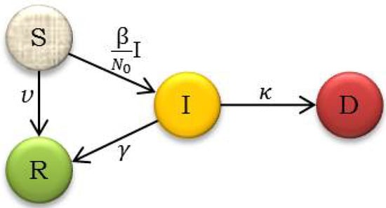 The severity of this pandemic was a cause of concern for researchers throughout the world; this led some of them to study its origins, such as Hasan’s recent study et al. [], which offered an insight into a novel COVID-19 compartmental SIRD model, whose representation is as follows: