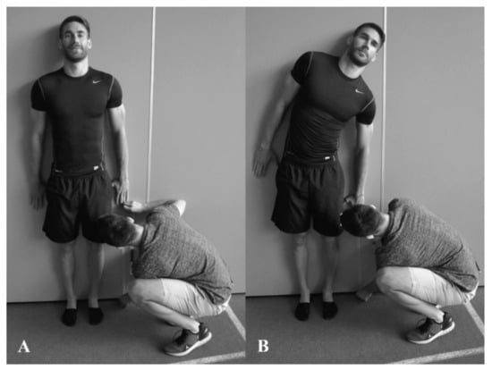 Position of participant during trunk lateral flexion range-of-motion testing. (A) start; (B) finish.