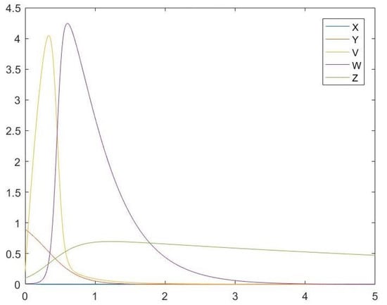 - Domoshnitsky, A.; Volinsky, I.; Bershadsky, M. Around the Model of Infection Disease: The Cauchy Matrix and Its Properties. Symmetry 2019, 11, 1016. [Google Scholar] [CrossRef] [Green Version]