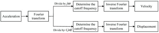 In FDIA, the signal is transformed into a frequency-domain signal by Fourier transform, and the operation is completed in the frequency domain. The velocity and displacement information in the time domain is obtained by inverse Fourier transform. The calculation procedure is represented in Figure 4.