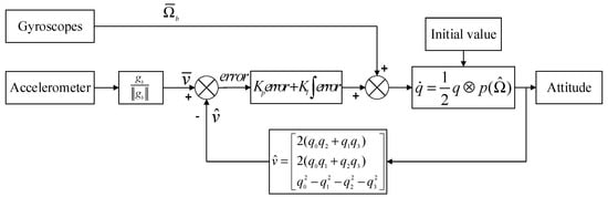The algorithm flowchart of Mahony complementary filtering is presented in Figure 5.