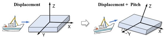 Schematic of dynamic displacement and pitch caused by the ship collision.