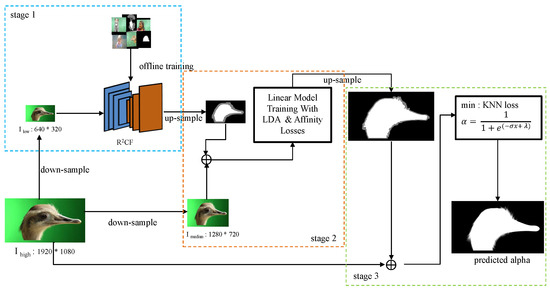 - Zhang, Y.; Gong, L.; Fan, L.; Ren, P.; Huang, Q.; Bao, H.; Xu, W. A Late Fusion CNN for Digital Matting. In Proceedings of the 2019 IEEE/CVF Conference on Computer Vision and Pattern Recognition (CVPR), Long Beach, CA, USA, 15–20 June 2019; IEEE Computer Society: Los Alamitos, CA, USA, 2019; pp. 7461–7470. [Google Scholar] [CrossRef]