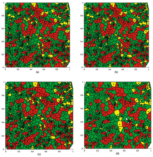 - Aurenhammer, F. Voronoi diagrams—A survey of a fundamental geometric data structure. ACM Comput. Surv. 1991, 23, 345–405. [Google Scholar] [CrossRef]
