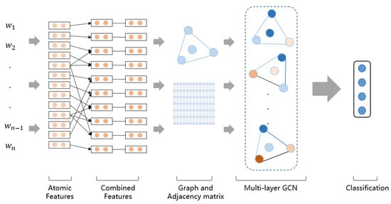 Inspired by the convolutional neural network, Kipf and Welling [24] built a graph convolutional neural network on the graph, which can update the information of the current node according to the information of the neighbor nodes. After multiple layers of GCN, we can think that each node has collected information about other nodes in the entire graph. Specifically, given the undirected graph based on combined features with n nodes, in an L-layer GCN, each layer can be expressed as a nonlinear equation: