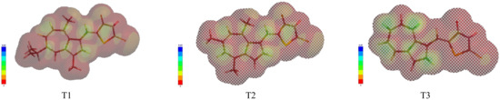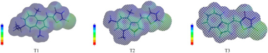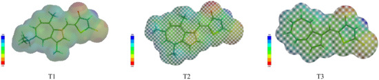 Predicted electrostatic potential maps of T1–T3.