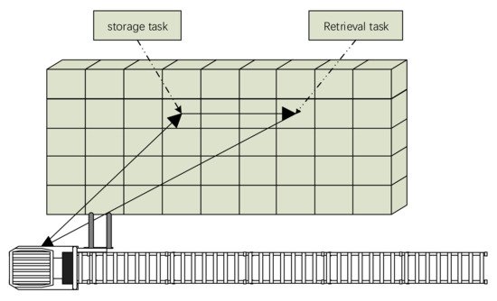 - Since the time taken by the stacker to store or take out the goods from the shelf accounts for a small proportion of the total time, this time is ignored; that is, once the stacker moves to the target storage location, it is regarded as completing the storage task.