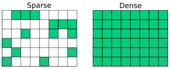 Sparse (asymmetric) and dense (symmetric) representation of data.