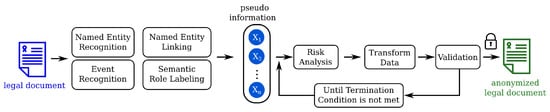 However, this openly published data can contain much sensitive personal information which should not be published [7]. The current anonymization practice of these legal documents means the masking or removing the names or other direct identifiers from these documents [8]. Many current research projects have been published in this topic, which shows how state-of-the-art Named Entity Recognition (NER) methods can be used to achieve an automatized process, which can reduce the necessary human work, which can take up to 40 min for a single document [2,9,10].