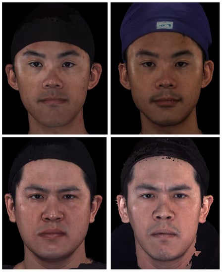 - Maal, T.J.; van Loon, B.; Plooij, J.M.; Rangel, F.; Ettema, A.M.; Borstlap, W.A.; Berge, S.J. Registration of 3-dimensional facial photographs for clinical use. J. Oral Maxillofac. Surg. 2010, 68, 2391–2401. [Google Scholar] [CrossRef] [PubMed]