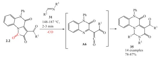 In addition, N4-substituted acyl(quinoxalin-2-yl)ketenes A6 generated from N5-substituted 3-acylpyrroloquinoxalinetriones 2.2 do not react with carbonyl compounds 20 [70].