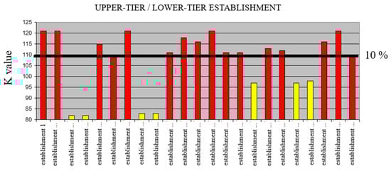 Calculation of K index for upper-tier and lower-tier establishments. Source: own research.