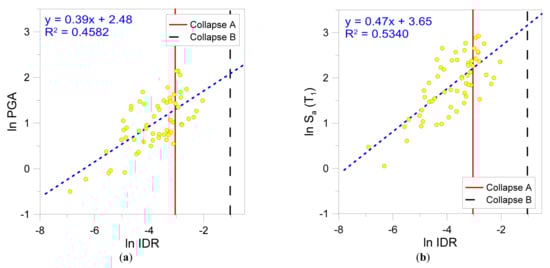 - θi is the median for IM given EDPi, which is derived from linear regression analysis as (a + b ln EDPi), where a and b represent the slope and intercept of linear fit, respectively;