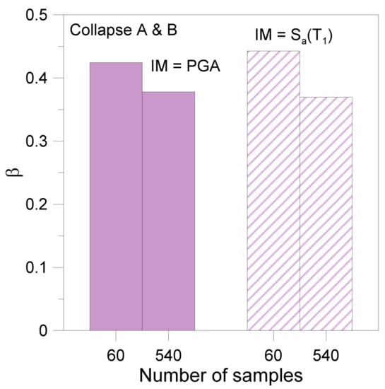 - βi is the logarithmic standard deviation for IM given EDPi, which is calculated as square root of the estimate of the sampling variance by Equation (3):