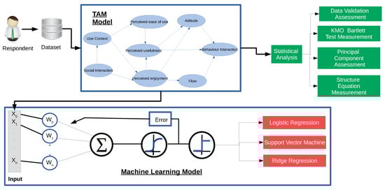 The rest of the paper is assembled as follows. In Section 2, we define the basic TAM model. In Section 3, a detailed literature reviews is given, along with the hypothesis. In Section 4, we will provide the research methodology, including data analysis. Section 5 gives a brief introduction to machine learning approaches. In Section 6 is the detailed metric and result analysis based on the machine learning technique. Section 7 is focused on the discussion and limitation of the study. In the last section, Section 8, the conclusion of the paper will be given, along with future aspects of the study.