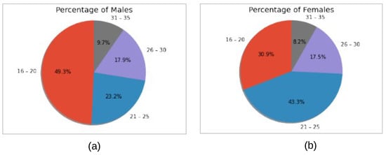 In descriptive statistics, the categorical data was examined, in which we evaluated online games’ users. Hence, Table 2 presents the users, i.e., age group from 16 to 20 years old, and people who are more involved in online games, in which 132 total respondents are involved in this category, where 102 were male, and 30 were female. Similarly, in another category, of 21 to 25 years old, the total of respondents was 90, in which there were 48 males and 42 females. Next, in the 26 to 30 age group, the total was 54, with 37 males and 17 females. At last, in the age group of 31 to 35 year old people, the total number was 28, in which 20 were male, and 8 were female. Therefore, the total number of respondents was 304, in which 207 were male, and 97 were female. In Figure 3, the percentage of males and females who participated is represented.
