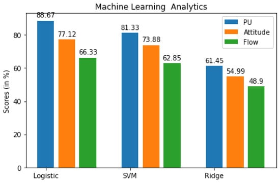 This research found a conceptual model with the base of technology acceptance model which examined the SEM analysis on projected conceptual model for online games adoption. The research model was prepared with the support of previous studies related to online games [28,29,64,69]. The empirical-based finding was conducted in the study. The outcome of study is majorly focused on individual behavior, symmetry in relations between responses, intention, understanding, and attitude towards various online games available on the Internet. The data of the research was good fit in nature. Therefore, the data was best suitable for measurements, and the result of the theoretical model was supportive, which justifies accurate results related to people’s behavior who are using online games or having a habit to play online games. The study reveals a symmetric relationship among the constructs. Therefore, the result found that symmetric social interaction has a positive significant impact on use context and perceived enjoyment. The outcome of this relationship is supported by Reference [70]. Another relation, i.e., use context, has found to have an impeccable effect on perceived enjoyment and perceived ease of use, which is supported by Reference [57]. Perceived ease of use is also found positive impact on perceived usefulness. Hence, results reinforced by previous study [38]. Next, perceived enjoyment reveal optimistic significant symmetric relationship with flow while playing online game. On the other hand, it is insignificant in relation to perceived usefulness and attitude, but results are supported by many researchers, whereby perceived usefulness has a substantial impact on attitude. The last relation of this study is with the dependent variable, i.e., behavior intention, in which the study found the positive relation to attitude, flow, and perceived usefulness, when comparing our observations with other literature work. Therefore, it can be implied that, in the field of online games, the study demonstrates that young consumers like to play online games frequently because they feel it easy, convenient, joyful, fun, and enjoyable, anytime and anywhere, without any performance consequences and trouble. The TAM model is very good in the implementation of quantitative problem of statistical analysis. For further evaluation machine learning approach is implemented to trigger the most prominent parameters indulge in the evaluation of online games complex problem. From this, three popular approaches are considered, i.e., logistic regression, ridge regression, and support vector machine. All these are worked efficiently to solve these kinds of problems. From Figure 7, Figure 8 and Figure 9, the performance of the models over the dataset is shown. These figures elaborates the training and testing accuracy on the dataset. Similarly, the ROC curve is also calculated that provide the region area to give the performance. The higher the region in ROC curve that better will be the model. The ROC curve is represented in the Figure 10, Figure 11 and Figure 12. Along with this, Table 9 gives the detailed view of performance in terms of Precision, Recall, F1-Score, and Accuracy. From all these most prominent factors evaluated is perceived usefulness, attitude, and flow, which affect high performance the most. Hence, the significance to apply machine learning approach is to reveal the most affective factors for online mobile games. Social interaction is also increased with this as most of the games on mobile devices are multiplayer games, where you can play with your friends, as well as strangers. They give the option to invite your friends via other social platforms, such as Facebook, WeChat, etc. This is how online games are also enhancing social interaction. The symmetry of social media platforms is reliable in providing services to the user. Each social media platform gains popularity only when there are a lot of things to do, i.e., interaction with people with friends, as well as strangers. The privacy of these platforms is also maintained at the individual level.