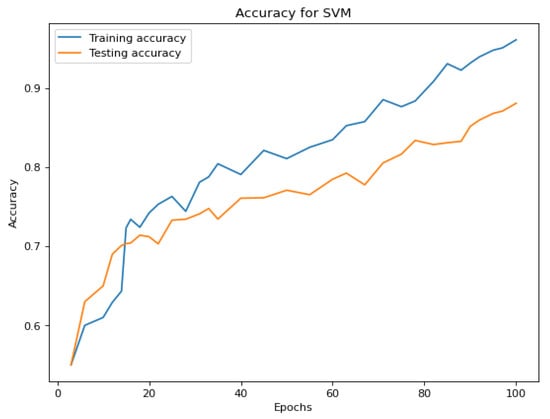 Support vector machine (SVM) is under the category of supervised learning. The supervised learning means a target value is provided to tackle the problem and find-out the error rate. SVM is generally used for classification, as well as regression analysis [65]. The equation for SVM classifier is as follows: