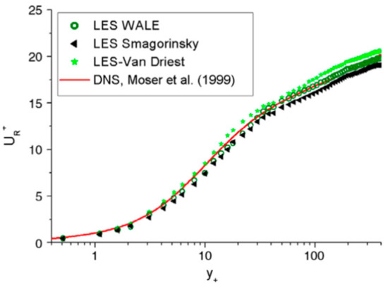 The LES model led to some improvements, and Weickert et al. [35] analyzed the differences among the LES WALE, LES–Smagorinsky, and LES–Van Driest models with respect to the DNS.
