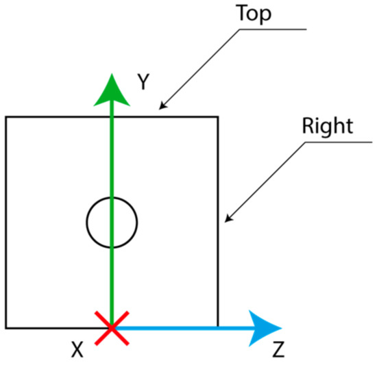 The velocity variation is used to estimate the reattachment length. For this purpose, four lines of 400 mm length were settled along the 60 × 60 × 400 mm box. They were located in the center, top, bottom, right, and left of the rectangle; that is, along x-axis at the symmetry line of the corresponding plan (see Figure 8).