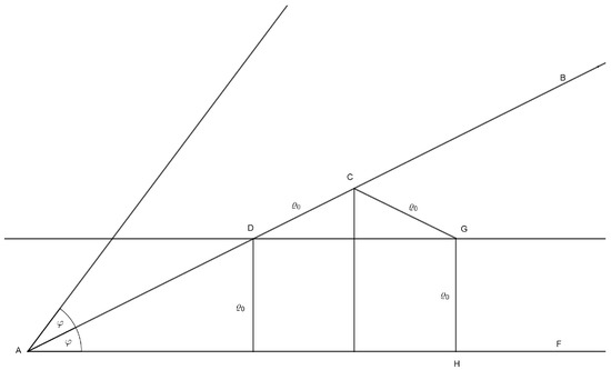 Denote . Fix a point G, , lying on a straight line parallel to the straight line and passing through the point D such that . Let be such that . Obviously and
