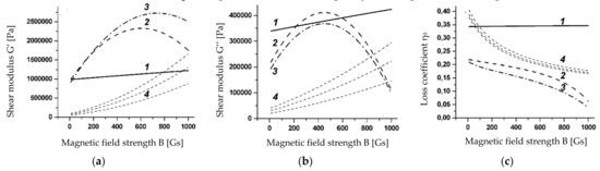- Bellan, C.; Bossis, G. Filed dependence of viscoelastic properties of magnetorheological elastomers. Inter. J. Mod. Phys. 2002, 16, 2447–2453. [Google Scholar] [CrossRef]