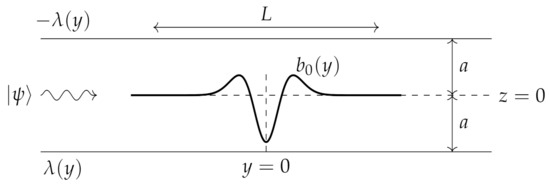 In our scheme, one can calibrate the field to result in a desired peak separation by adjusting the field strength parameter f and the distance between the top and bottom line charges. For , we choose a magnetic field profile composed of two Gaussians with an adjustable width parameterized by (as shown schematically in Figure 2),