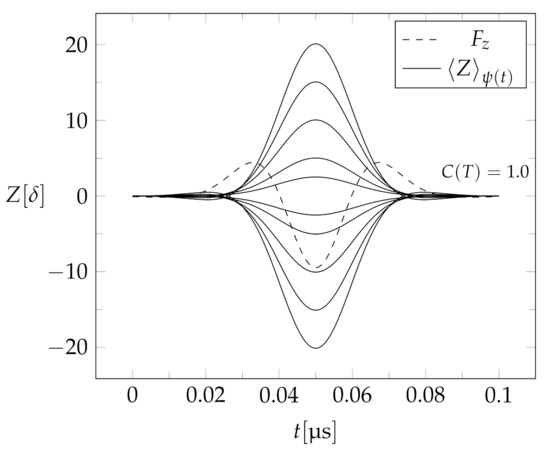 In the particular situation of an SGA, the atom’s spin and orbital degrees of freedom are coupled by the force resulting from the magnetic field gradient, and only this coupling is available for reversing the action of the SGA in a unitary fashion. We cannot undo the action of the unitary evolution operator , with H as in Equation (3), by applying its inverse because is not a physical Hamiltonian—so much for mathematical reversibility; more about this can be found in [27] and ([42] Section 5.2). Rather, we must carefully tailor the magnetic field to implement the disentangling reversal as well as we can.