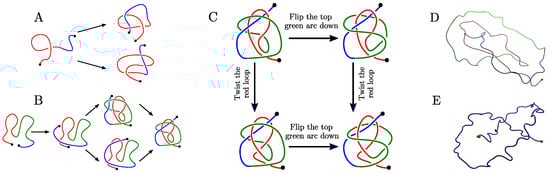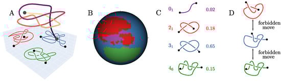 - Dorier, J.; Goundaroulis, D.; Rawdon, E.J.; Stasiak, A. Open Knots. In Encyclopedia of Knot Theory; Chapman and Hall/CRC: Boca Raton, FL, USA, 2020; Chapter 84. [Google Scholar]
