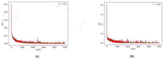 Figure 14 shows the loss of the network corresponding to the two datasets in the training phase. With the increase of the number of epochs, the loss continues to decrease. We can see that the corresponding networks on the two datasets basically reach the convergence state when the epoch is about 4000. Therefore, it is verified that the network model in this paper converges easily.