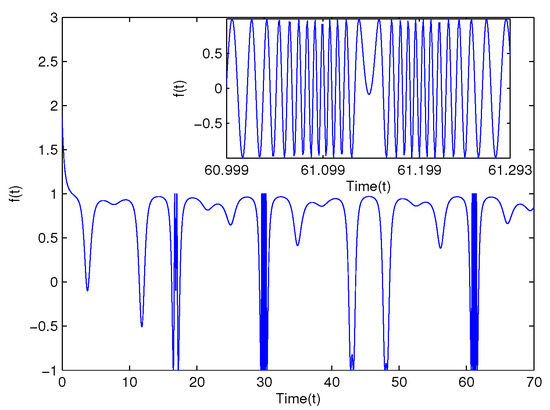 It is well known that symmetry exists in every corner of the world, which may help us explore the truth around our life. Particularly, if there is a periodic function F with a periodicity , then it holds that , which means the periodic functions are symmetric within a cycle time. However, the symmetry may not always appear in the accurate sense; it is meaningful to generalize the periodic functions into more general cases, for instance, almost periodicity or almost automorphy. For example, an almost periodic function and a pseudo almost automorphic function . (About the almost-symmetry, please see Figure 1 and Figure 2).