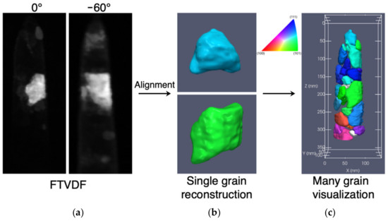 - Eggeman, A.S.; Krakow, R.; Midgley, P.A. Scanning Precession Electron Tomography for Three-Dimensional Nanoscale Orientation Imaging and Crystallographic Analysis. Nat. Commun. 2015, 6, 7267. [Google Scholar] [CrossRef] [PubMed] [Green Version]