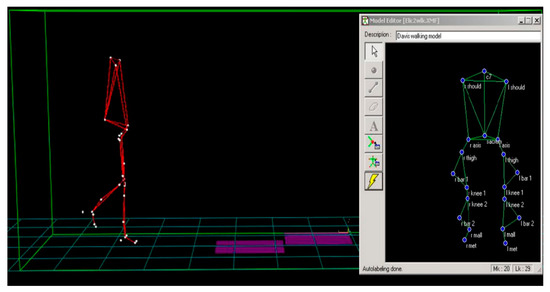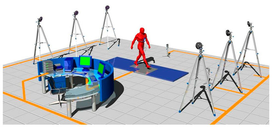 Before testing, 22 photoreflective passive markers corresponding to selected anthropometric points were placed on the patient’s body according to the Davis protocol. A schematic of the gait analysis laboratory and the course of the study are shown in Figure 2 and Figure 3.