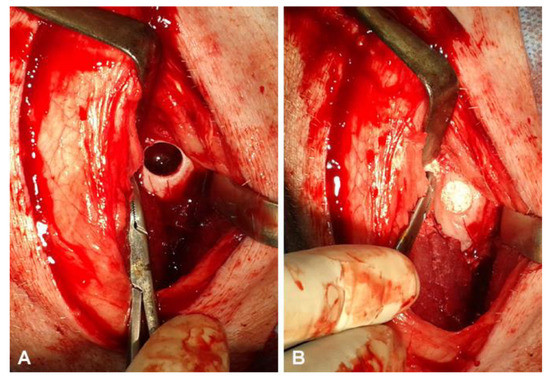 Anesthesia, the surgical procedure (creation of defect, filling of the defect with biocement, Figure 2), and postoperative care were described by Tóthová et al. [15].