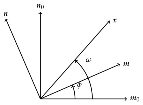 The first part of Equation (44) can be further simplified as follows. Choosing and . Therefore, and are two orthogonal unit vectors in the plane. The north-west (NW) block of the matrix in the integrand in Equation (44) can be rewritten: