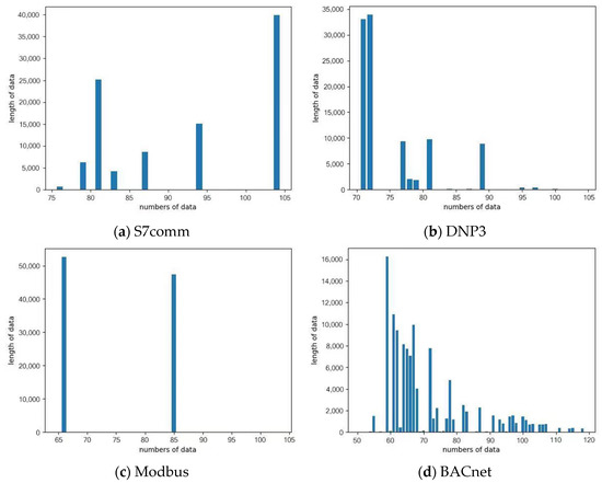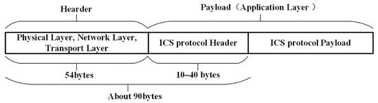 In general, the length of the ICS protocol data is different. We investigated some of the ICS protocols and found that the length of the ICS protocol header is mostly concentrated at 10–40 bytes. The remaining is the payload data part of the industrial control protocol. Figure 3 is a schematic diagram of the ICS packet’s structure.