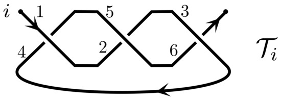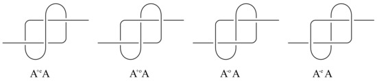 - Conway, J.H. An Enumeration of Knots and Links, and Some of Their Algebraic Properties. In Computational Problems in Abstract Algebra; Leech, J., Ed.; Pergamon Press: Oxford, UK, 1970; pp. 329–358. [Google Scholar]