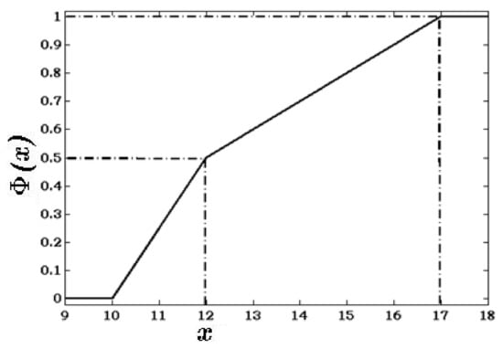 (Liu [22]). The uncertainty distribution of an uncertain variable represented in Equation (6)