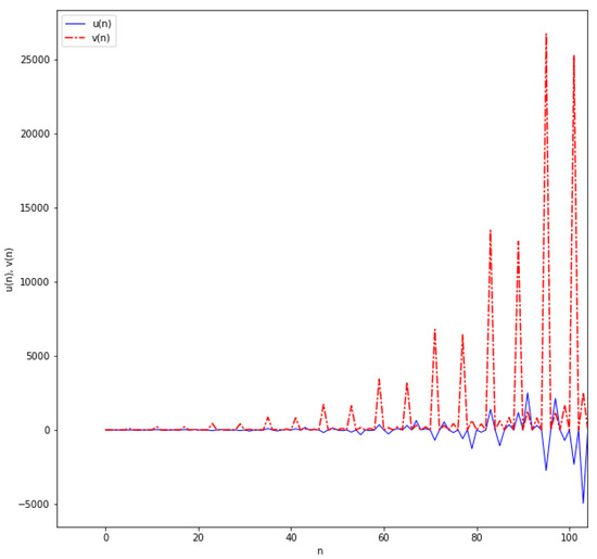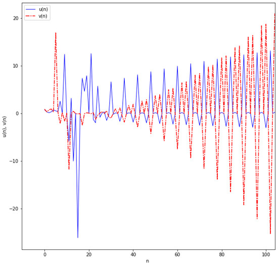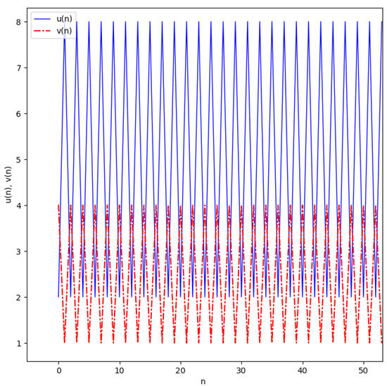 where and are the initial conditions, which are arbitrary non-zero real numbers.