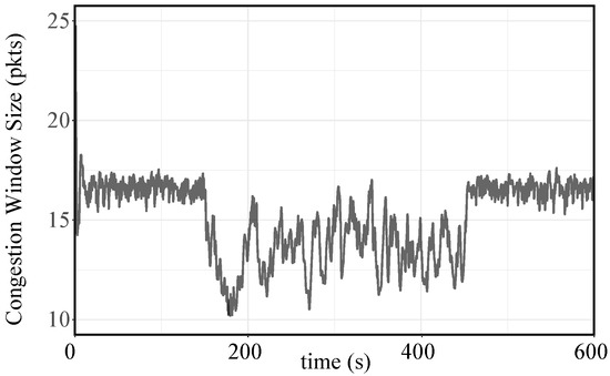 The term in (12) is actually the amount of data being transmitted in the TCP/IP network, which is physically constrained to the TCP/IP network capacities, namely where is the buffer capacity defined in (7). BDP is the Bandwidth-Delay Product, which represents the amount of data that can be in transit [35]. BDP refers to the product of a data link’s capacity C and its round-trip delay time , i.e., , where C and are defined in (7). Normally, the buffer capacity of a router in (7) is dependent on the BDP, i.e., , where is a constant [36]. Then, it can be obtained that and furthermore, we have the condition (11) is true.