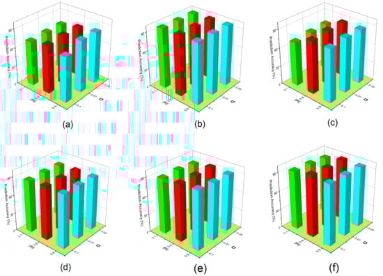 From the results given in Figure 7c, we observe that when is fixed with different values, the prediction accuracy of the OFSVMB algorithm increases for = 0.8 and 0.9. For some datasets given in Figure 7b,f, when the = 0.1, it can still keep the important feature along with instances and increase the prediction accuracy. We observe that the most optimal values of parameter are 0.01 and 0.05, and under these values with different , the prediction accuracy of OFSVMB is higher. Still, the parameter = 0.1 with different also has an optimal contribution to the given six datasets regarding prediction accuracy. Thus, such an empirical value can be adopted in practice for future methods based on the statistical conditional independence test. These observations conclude that the OFSVMB is more accurate in selecting the optimal features regarding different with different .