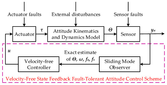 The structure of the proposed fault-tolerant attitude control system without velocity measurements.